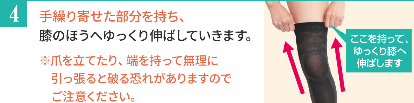 また、ひざ上がズリ落ちてしまうというお客様の声にお応えして、滑り止め機能「ダウンストップ®」を使用。快適に着用いただけます。